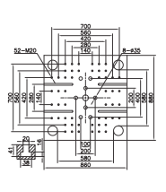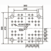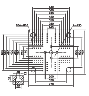 IJTS410 Veja as especificações ESPECIFICAÇÃO UNID IJTS410 UNIDADE DE INJEÇÃO ABC Diâmetro da rosca mm 707580 Relação L/D da rosca L/D 21.42019 Volume teórico de injeção cm³ 150117231960 Peso de injeção (PS) g 136615681784 Pressão da injeção MPa 199173152 Velocidade máx. da rosca r/min 172 UNIDADE DE APERTO Força de fechamento kN 4100 Curso de abertura mm 720 Distância entre colunas (H×V) mm 730×730 Tamanho do gabarito mm 1040×1040 Altura máxima do molde mm 780 Altura mínima do molde mm 300 Curso ejetor mm 180 Força ejetora kN 113 Pontos de ejeção 13 OUTROS Pressão máxima da bomba MPa 17.5 Potência do motor da bomba kW 60.5 Capacidade de aquecimento kW 29.5 Volume do tanque de óleo L 700 Dimensões da máquina (L×W×H) m 7.4×1.9×2.35 Peso da máquina T 14.5 Dimensões da área da placa: