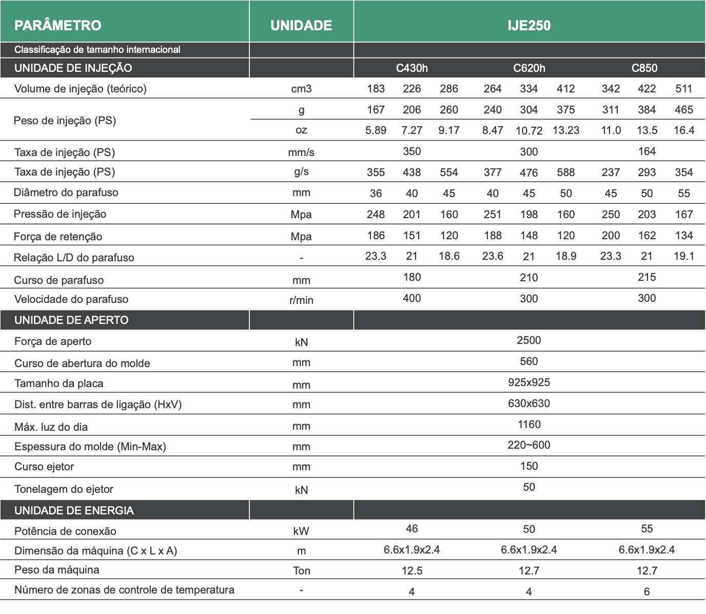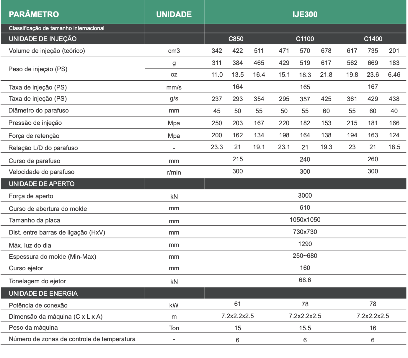 Força de aperto: 1000 – 3700 KN / 100 – 370 TON