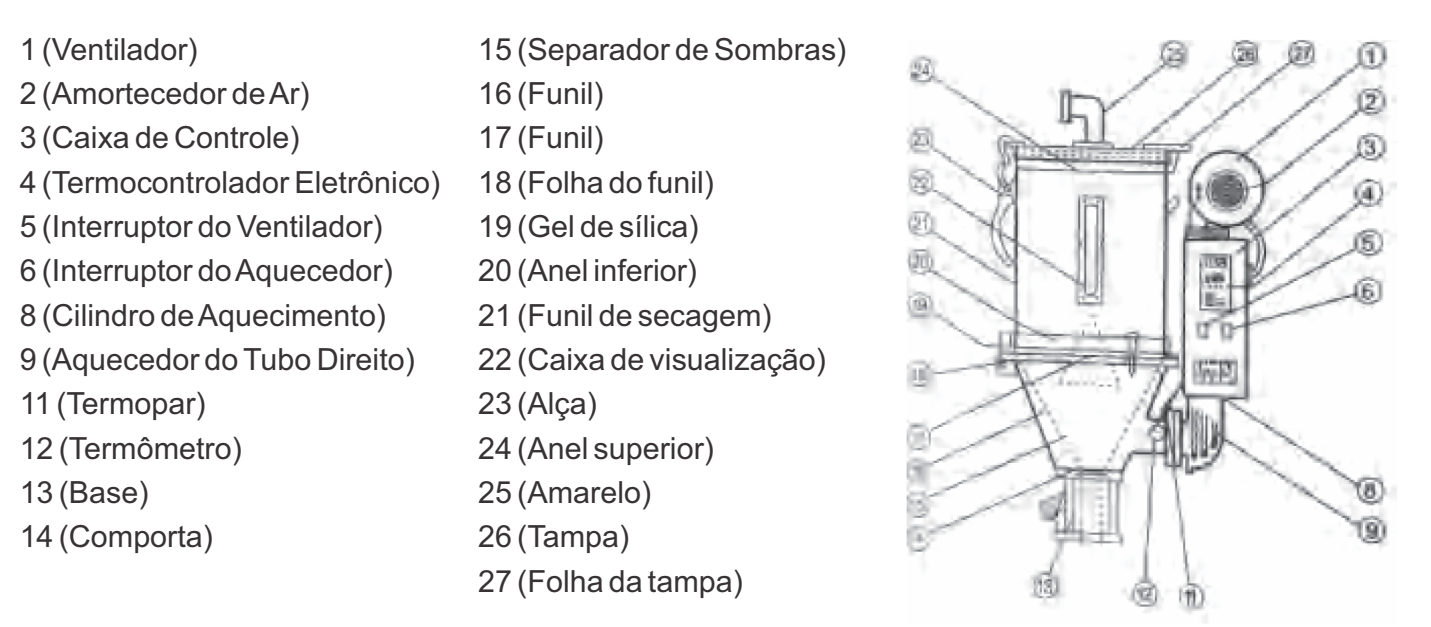 uniformemente o ar quente, mantendo a secagem e a uniformidade do plástico,