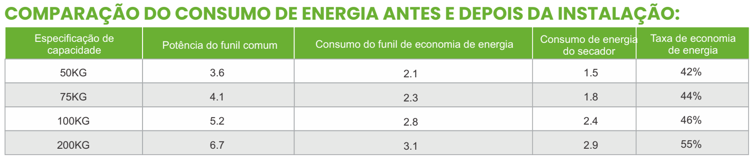 temperatura interna de 20°C. Tomando como exemplo 20 funis de 50 kg, eles funcionam
