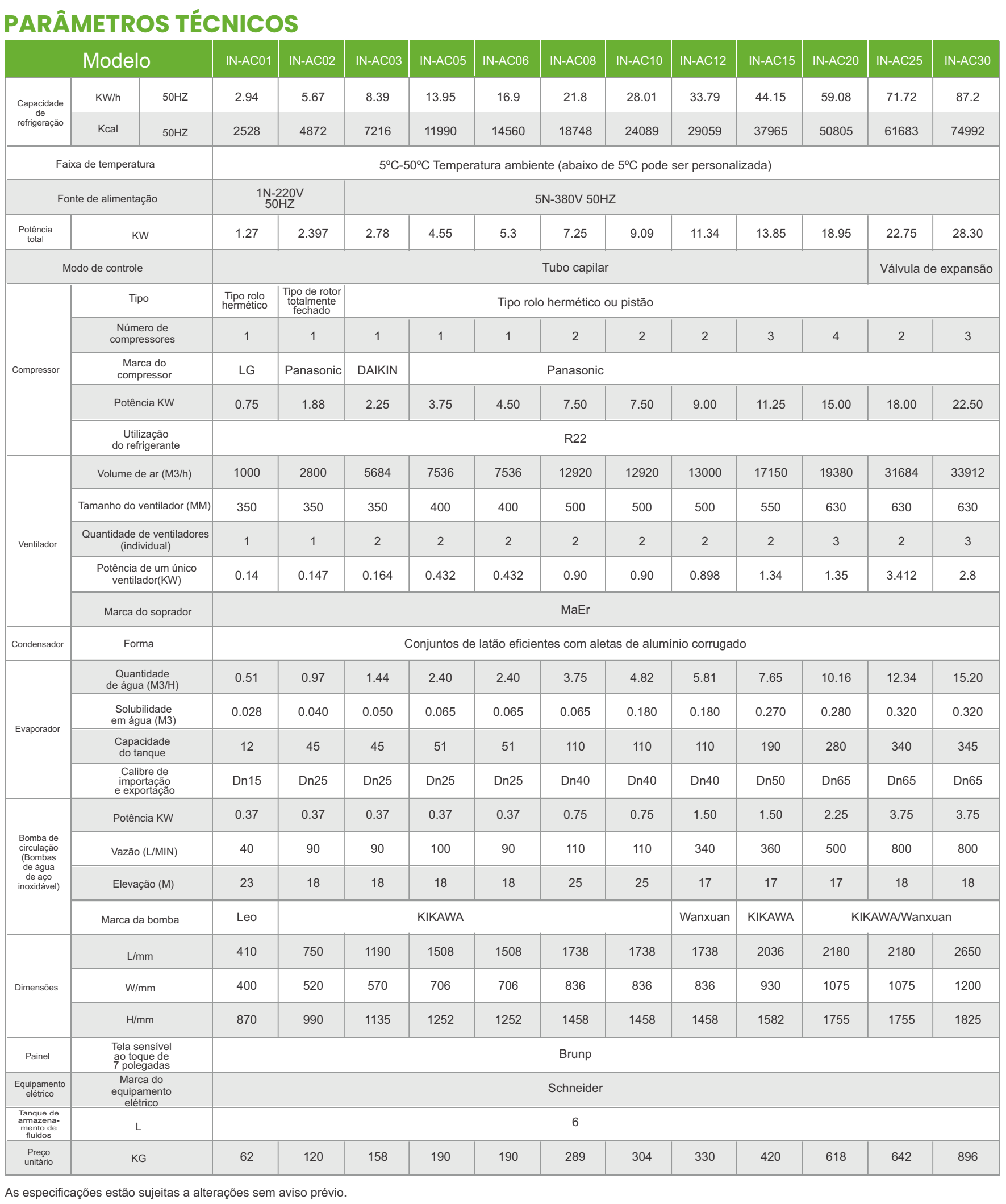 - Tanque de água anticorrosivo; dispositivo de proteção anticongelante.